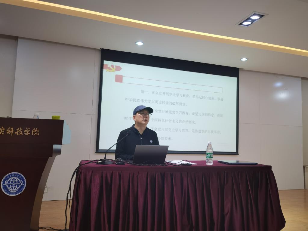 李君教授以《不忘初心 牢记使命》为主题,从为什么学党史、如何学党史、要树立正确的党史观三个方面系统阐述了党史学习的重要性。他以共产党百年奋斗征程为脉络,密切结合习近平总书记在党史学习教育上的重要讲话精神,深刻阐述了坚持中国共产党的领导、树立正确的唯物史观的重要性。